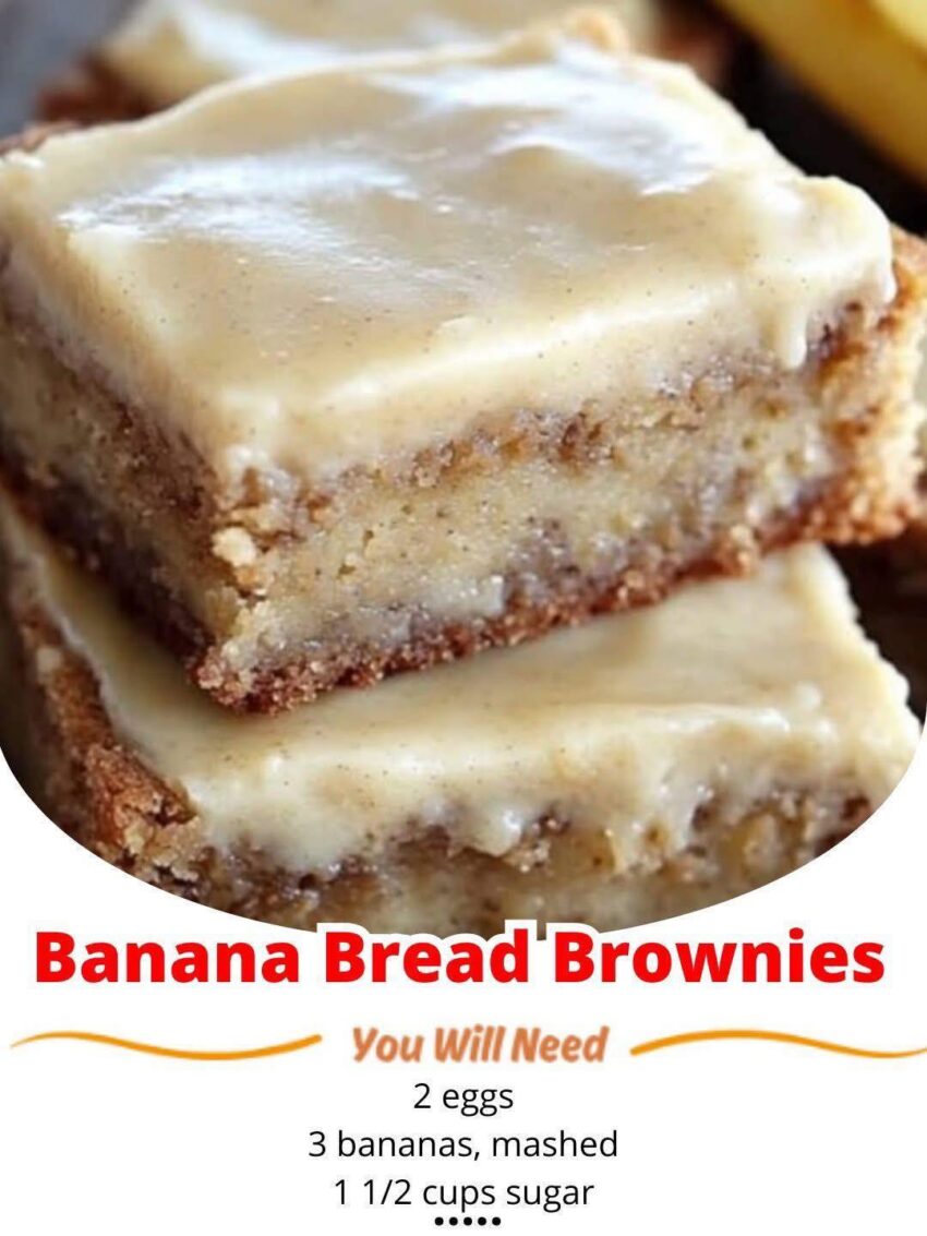 Here’s a soft, rich mashup of banana bread and fudgy brownies—moist, slightly dense, and perfect with a light glaze on top.
