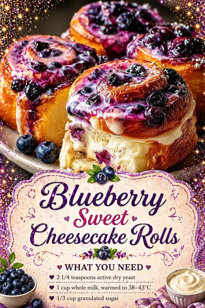 Here’s a soft, creamy, bakery-style Blueberry Sweet Cheesecake Rolls recipe—sweet rolls filled with cream cheese and blueberries, then baked until golden and topped with a light glaze.
