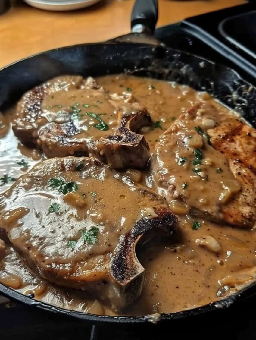 If you want, I can also give a one-pan version where the pork chops and creamy gravy cook together without needing to transfer, making cleanup super easy.