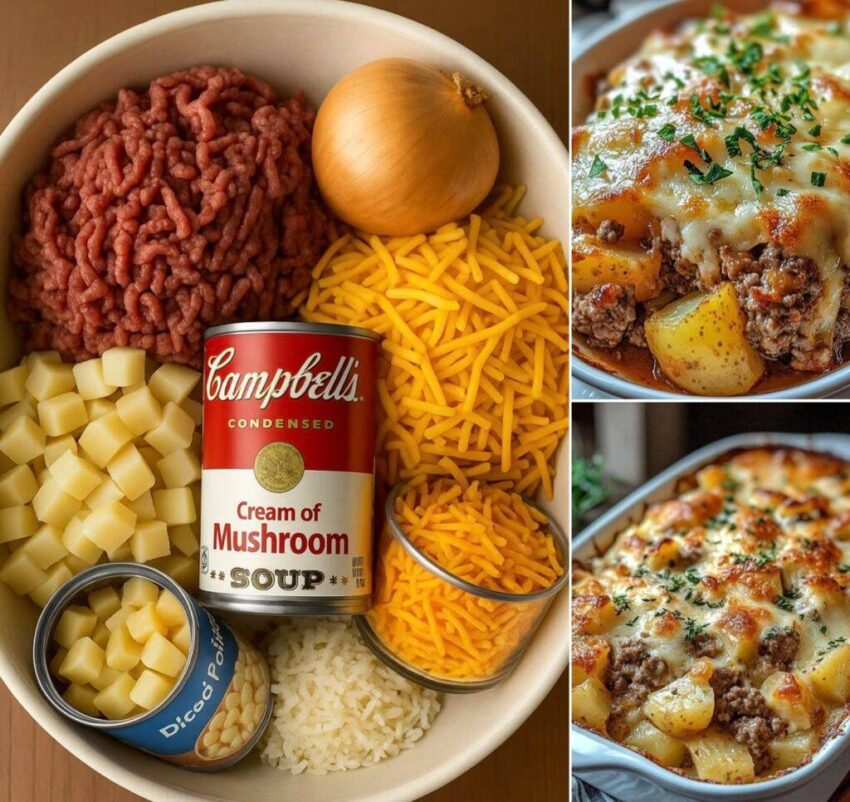 Here’s a hearty, comforting Meat & Potato Casserole — simple ingredients, big flavor 🥔🥩