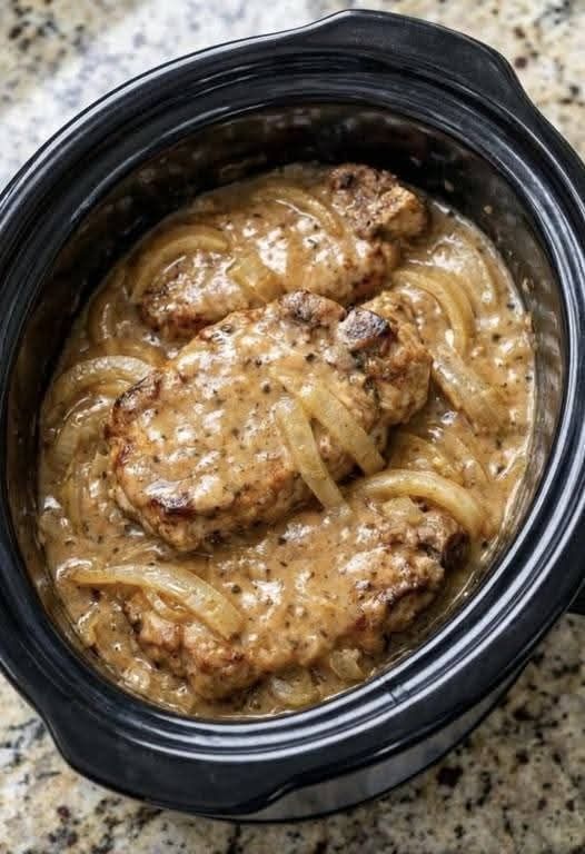 Absolutely! Here’s a slow cooker pork chops and onions recipe — tender, flavorful, and melt-in-your-mouth delicious 🐖🧅.