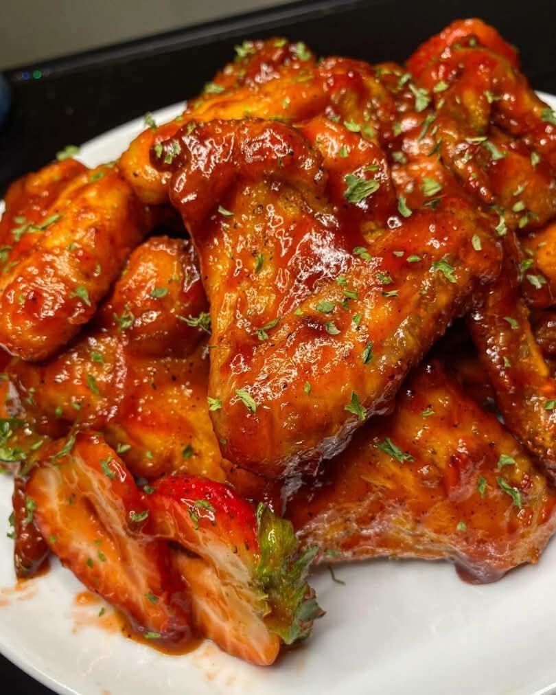 Here’s a sweet-and-spicy twist on chicken wings — Strawberry Habanero Chicken Wings 🍓🌶🍗. They’re sticky, fruity, and pack a kick!