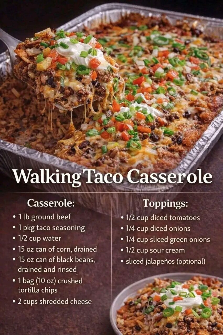 Here’s a tasty and easy Taco Casserole recipe — cheesy, meaty, and full of Tex-Mex flavor 🌮🧀