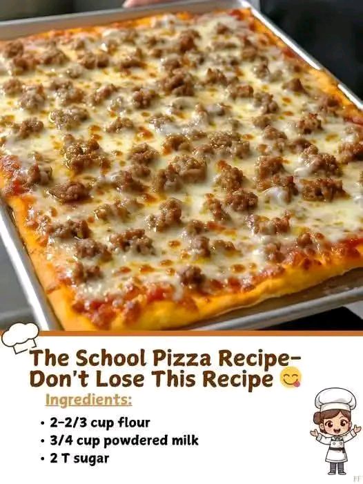 Here’s a fun and simple “School-Style Pizza” recipe — the kind of pizza many kids love, soft, cheesy, and easy to make at home 🍕